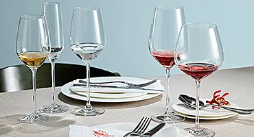 Прозрачный хрусталь как нельзя лучше подчеркивает красоту и глубину тона вина. В производстве стеклянных бокалов применяются различные техники выдувания, в результате которых получаются абсолютно несхожие друг с другом изделия. Особенно ценятся традиционная европейская методика работы со стеклянной массой. Благодаря многолетнему опыту мастеров продукция приобретает не только великолепную красоту, но и уникальное качество. А если прибавить к этому использование инновационных технологий, как сделала компания Schott Zwiesel, то получатся изделия, равным которых найдется немного во всем мире. Коллекция Fortissimo представлена классическими тюльпановидными бокалами для вина. Здесь есть фужеры для игристых напитков, воды, а также красного и белого сортов. Изящная тонкая ножка каждого из них плавно переходит в округлое основание, идеальное соотношение к чаше которого обеспечивает превосходный баланс. В производстве этих изделий была применена особенная технология TRITAN, обеспечивающая прочность и износостойкость.