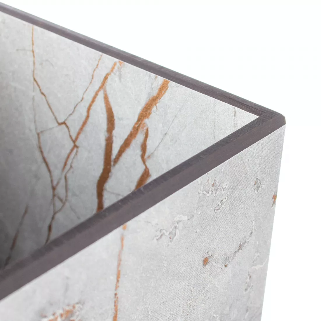 В качестве основы в производстве изделий из коллекции Fashion, как и в изготовлении всей другой продукции, мастера компании Compose Eat используют материал на основе крафтовой и декоративной бумаги. Она измельчается и пропитывается экологическим чистыми термопластичными смолами. С ее помощью основа приобретает твердость монолита и отлично сопротивляется влиянию времени и механическим повреждениям. Такой композит поразительно пластичен. Это качество дает возможность мастерам придать изделиям любую форму, а также оснастить ее дополнительными функциональными элементами: желобками для стекания сока, отверстиями для подвешивания и изящными рукоятями.