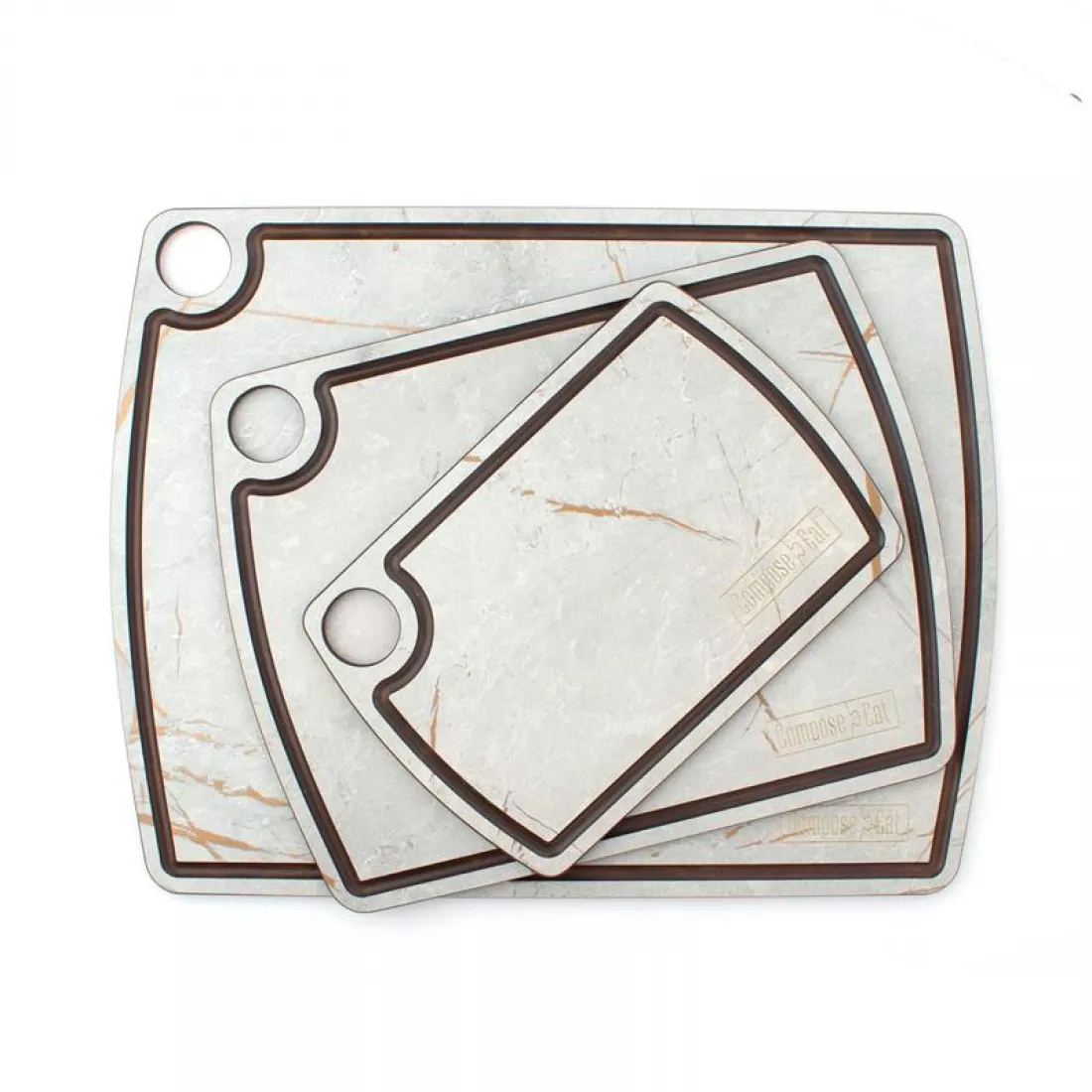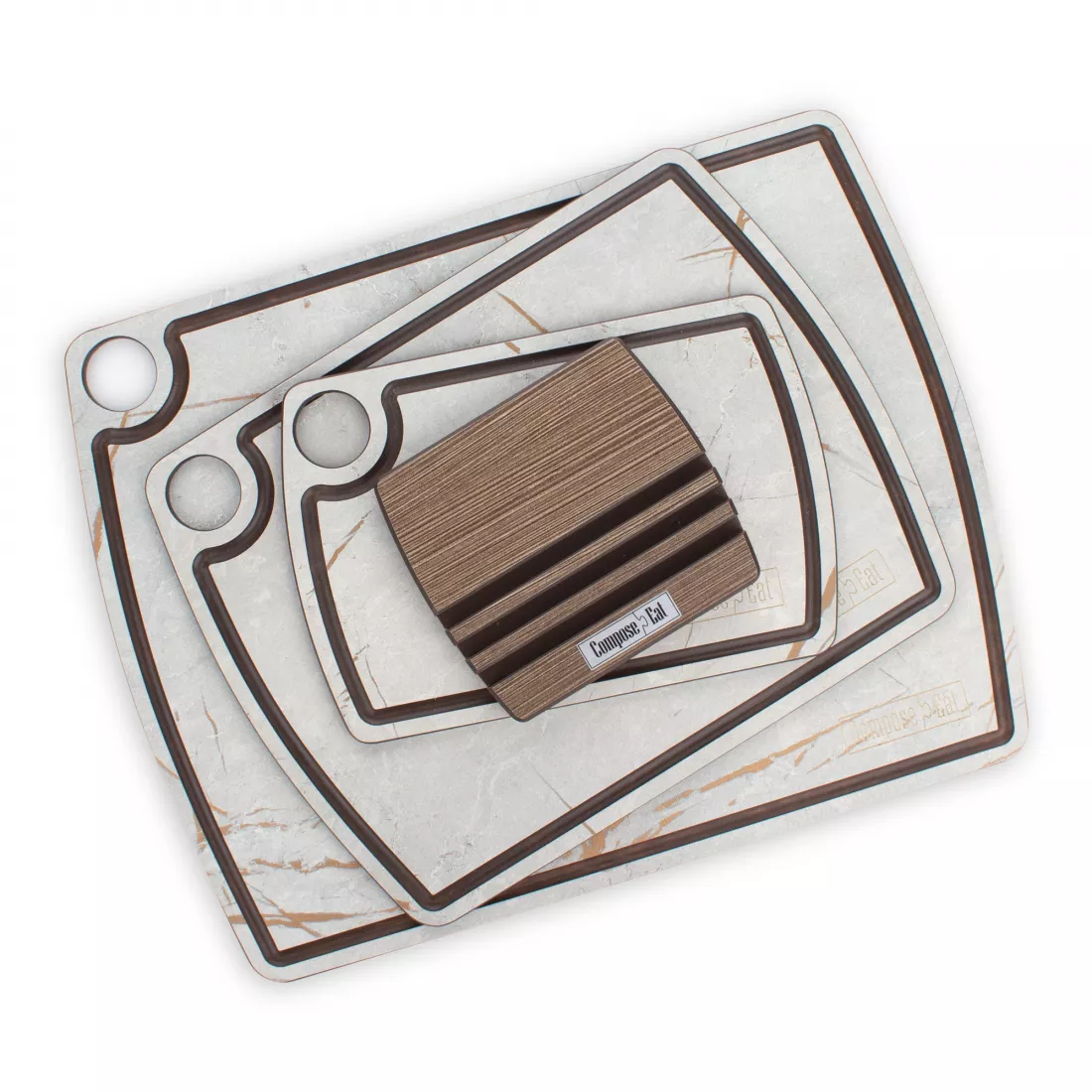 Разделочные доски от Compose Eat обладают уникальным набором качественных характеристик. Изготовленные из бумажно-слоистого композита, они в разы превосходят аналоги, выполненные из прочих материалов. В отличие от стеклянных доски Compose Eat не подвержены механическим повреждениям и не деформируют режущую кромку ножа, от деревянных они отличаются способностью максимально долго сохранять целостность поверхности и не впитывать посторонние запахи, а от пластиковых отличаются роскошным внешним видом. В этом разделе представлены функциональные наборы разделочных досок от Compose Eat, которые станут вашими верными помощниками в приготовлении различных блюд как на домашней, так и на профессиональной кухне.