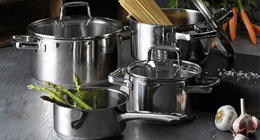 Серия Charm является истинным воплощением простоты и очарования. В нее входят базовые изделия, которые обязательно должны присутствовать на каждой кухне. Они изготавливаются из нержавеющей стали и оснащаются плотно прилегающими крышками и эргономичными рукоятями. Коллекция Expertiso разработана при участии профессиональных шеф-поваров. В нее входят кастрюли, с помощью которых вы легко сможете приготовить любое, даже самое сложное блюдо. Изделия из линейки Silence Pro оснащены специальными прорезиненными прокладками по ободку крышки и поверхности рукоятей. Они не только позволяют безопасно переносить даже горячую кастрюлю без дополнительных приспособлений, но и обеспечивают создание идеальных условий для приготовления любых блюд.