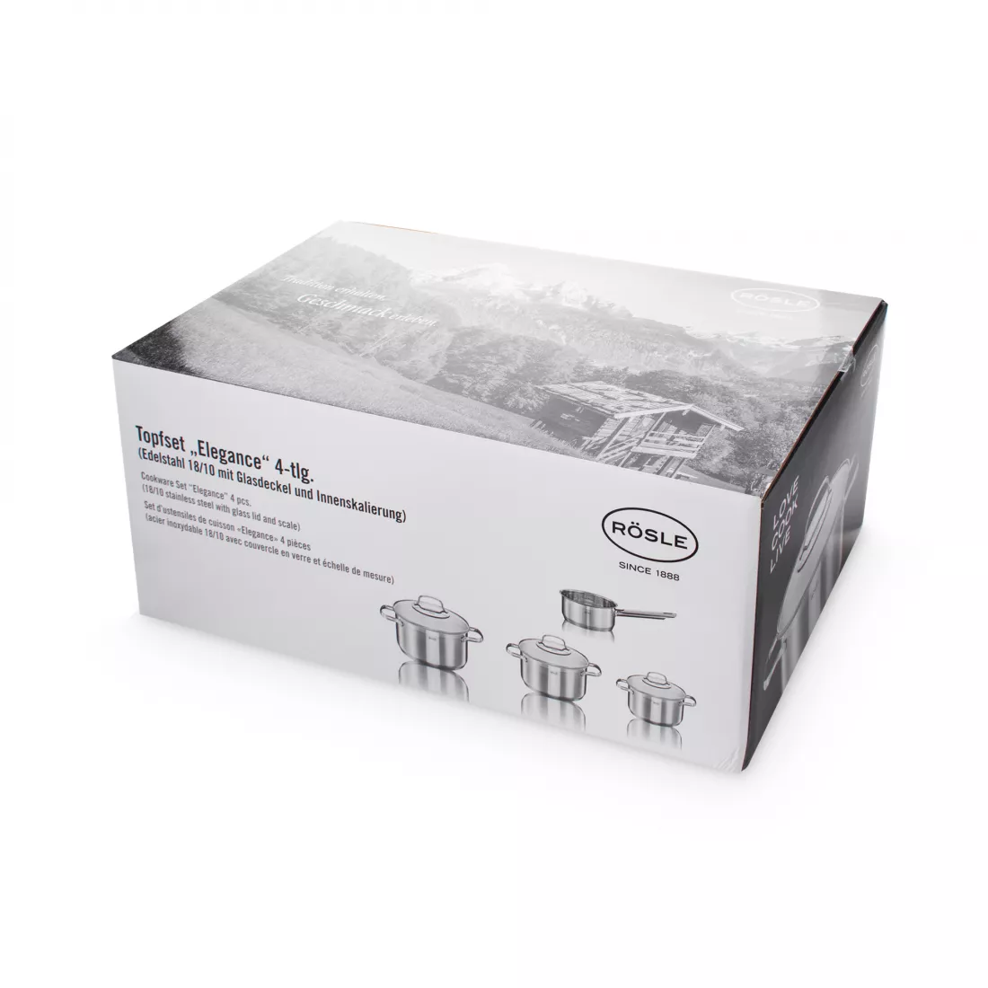 Наборы посуды от Roesle собраны из наиболее подходящих друг другу моделей. Каждый из них включает в себя кастрюли больше и меньшего объема, а также ковши для приготовления соусов или горячих закусок.