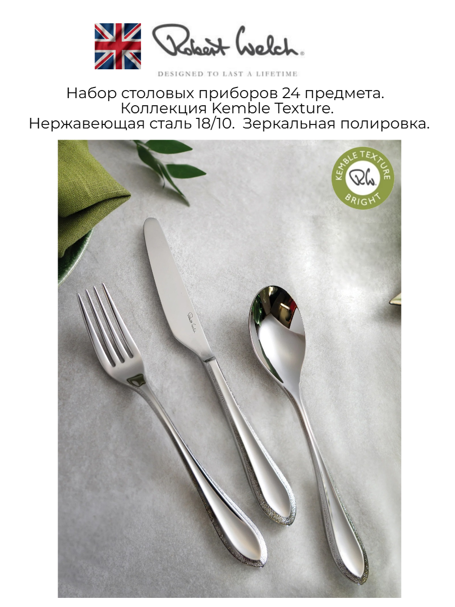 Набор столовых приборов (24 предмета / 6 персон) ROBERT WELCH Kemble Textured арт. KETBR1099V/24